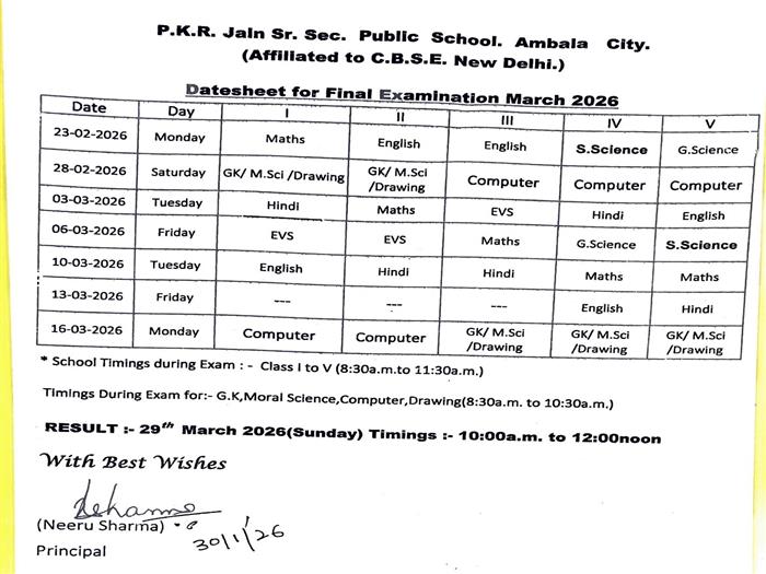 Date Sheet for Final Examination 2025-26 (I - V)